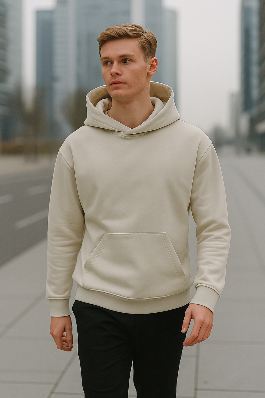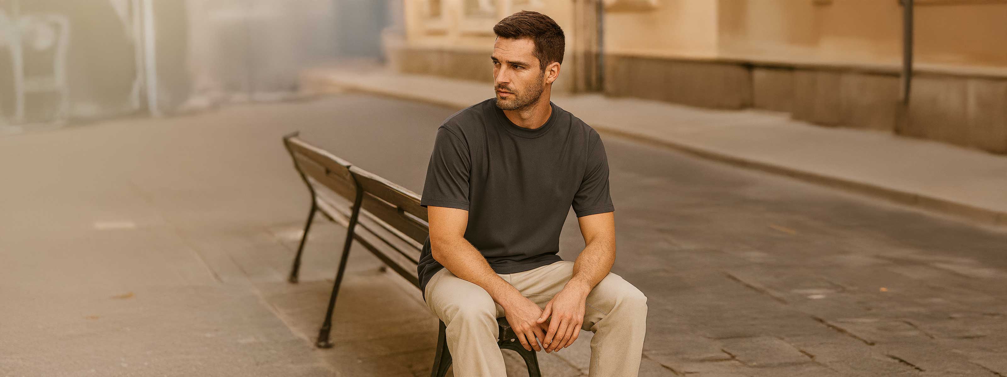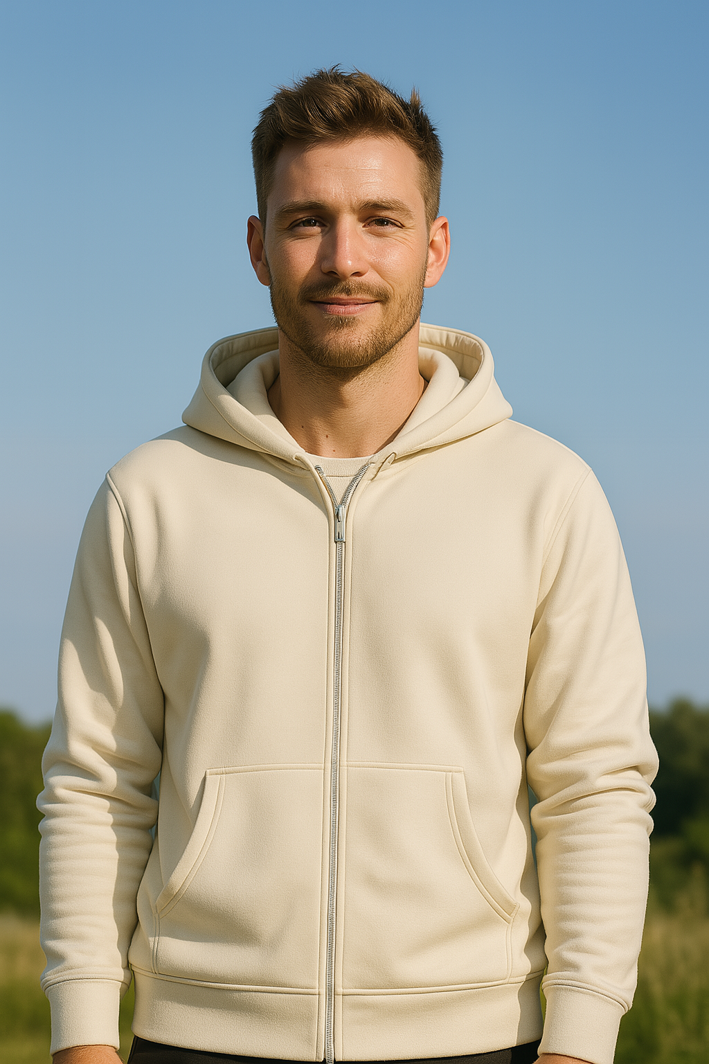 Luxury in the layers, not the label. Just premium t‑shirts, basic sweatshirts, and zip hoodies for men designed to outlast trends. We focus on quality over quantity, producing elevated basics in smaller runs to reduce waste. Every piece — from our plain white t‑shirts to our black jumpers for men — is made from high‑quality, responsibly sourced fabrics like organic cotton and recycled fibres.