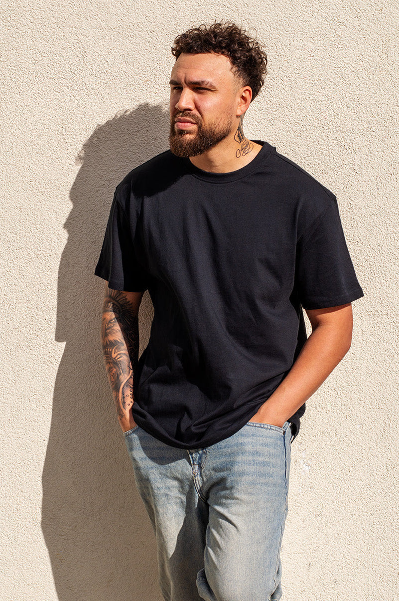 Luxury in the layers, not the label. Just premium t‑shirts, basic sweatshirts, and zip hoodies for men designed to outlast trends. We focus on quality over quantity, producing elevated basics in smaller runs to reduce waste. Every piece — from our plain white t‑shirts to our black jumpers for men — is made from high‑quality, responsibly sourced fabrics like organic cotton and recycled fibres.